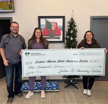 In response, Antler Hill Veterinary Services does our best to give back to the communities that have shown us so much support. We're proud to sponsor multiple local sports teams, community building initiatives, as well as participate in town events such as the Penhold Fall Festival and host students from various locations. Neds Wish, Courageous Companions and the Central Alberta Child Advocacy Centre are organizations near and dear to our hearts that we're able to fundraise for as well. Click on their logos below to learn more about the important work that they do!